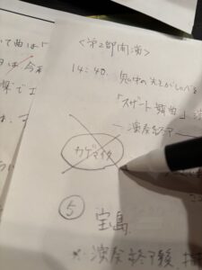 演奏会終了のアナウンスをカゲマイクで入れて終わり。